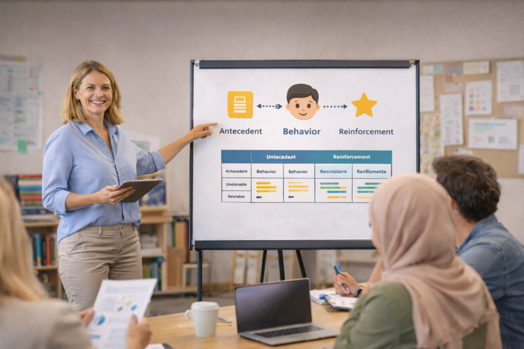 Consultation and Professional training programs designed to equip teachers, educational staff, and families of individuals with Autism Spectrum Disorder with modern teaching strategies, inclusive education practices, and effective behavior management skills, grounded in Applied Behavior Analysis (ABA). These programs aim to support positive behavior development, enhance learning outcomes, and promote academic and social inclusion within school and daily life settings.